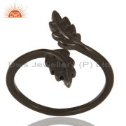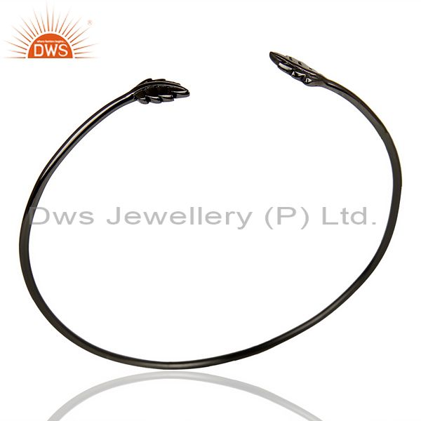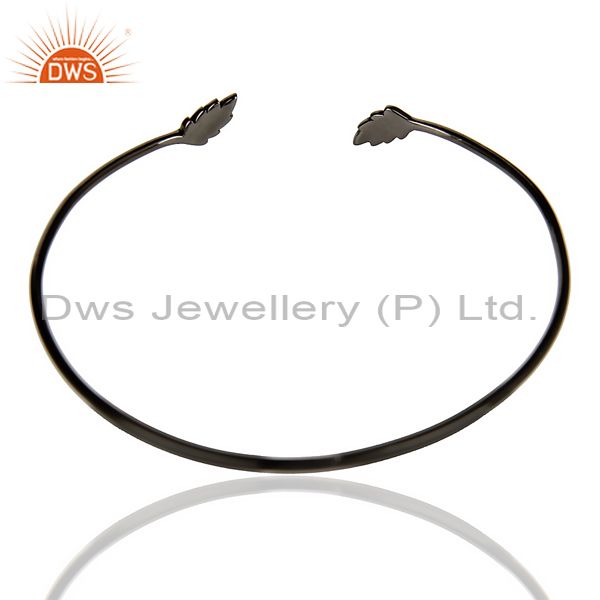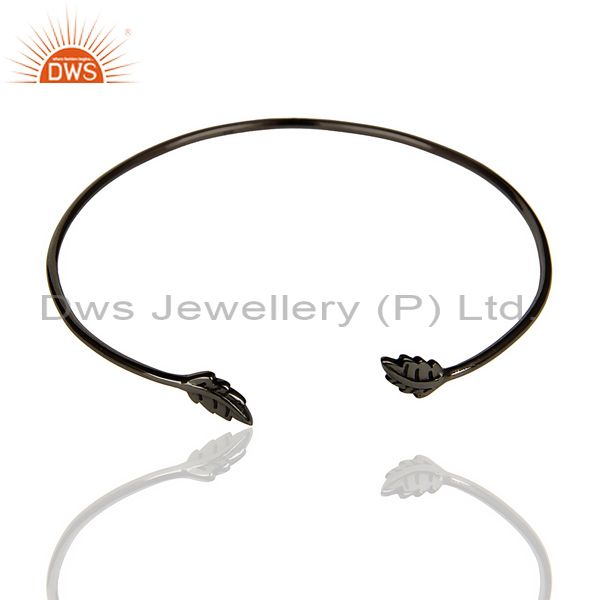 Leaf Adjustable Bangle Black Rhodium Plated In Solid 92.5 Sterling Silver