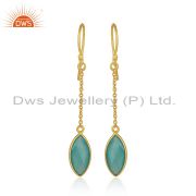 Marquise Shape Aqua Chalcedony Gemstone Gold Plated Silver Cuff Bangle