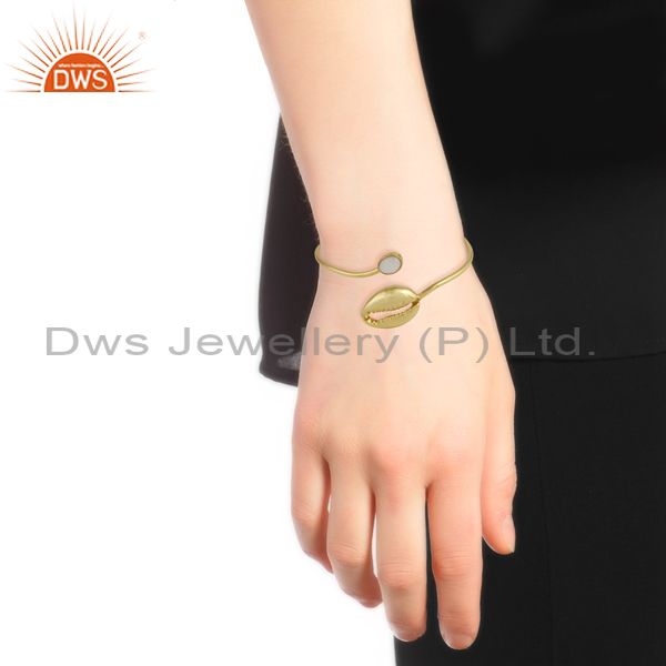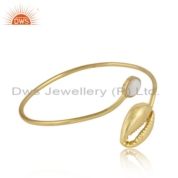 Mother of Pearl Gemstone Cowrie Design Gold Plated Silver Bangle