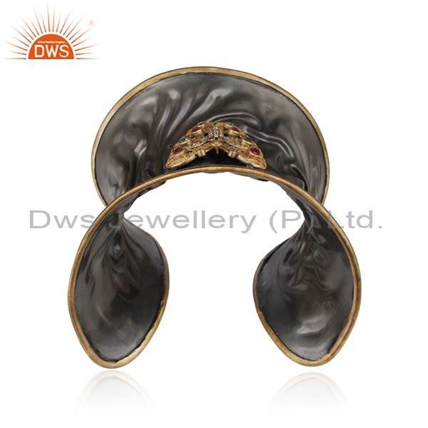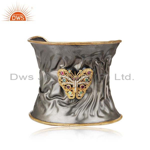 Multi Zircon Butterfly Black Oxidized Fold Form Handmade Cuff Lovely Designe