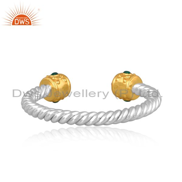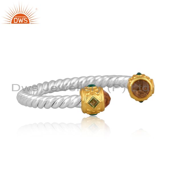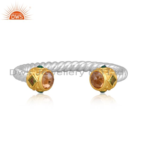 Natural Citrine Gemstone Handmade Twisted Silver Cuff Bangle