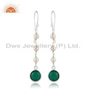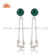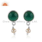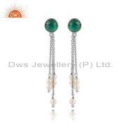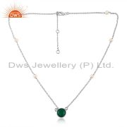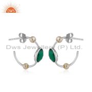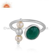 Natural Green Onyx Pearl Gemstone Designer Fine Silver Cuff Bangle