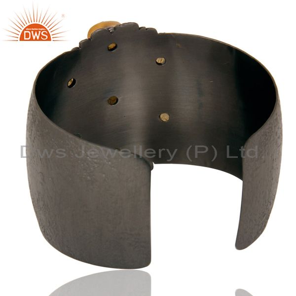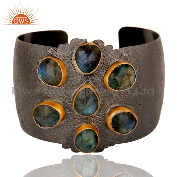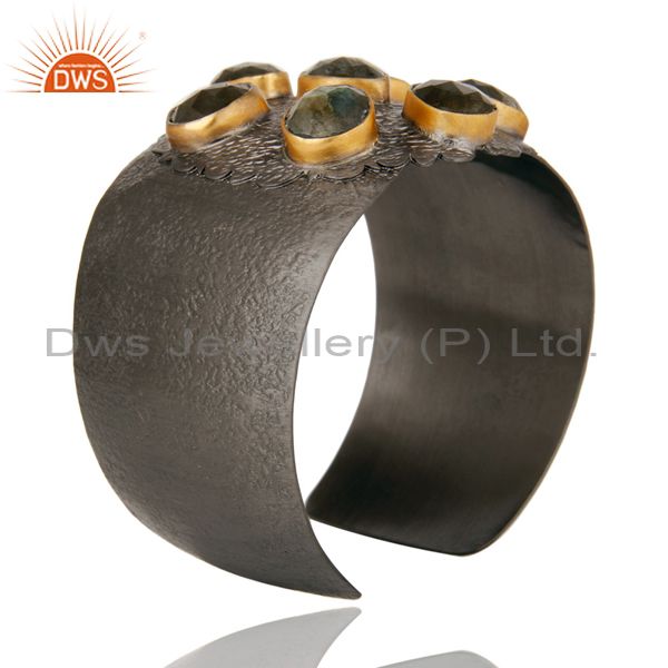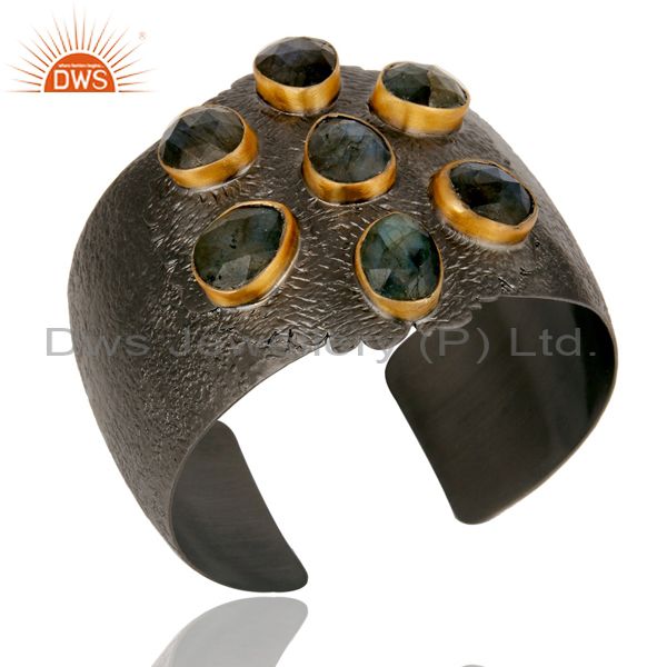 Natural Labradorite Black Oxidized Handmade Cuff Fashion Jewelry Textured Bangle