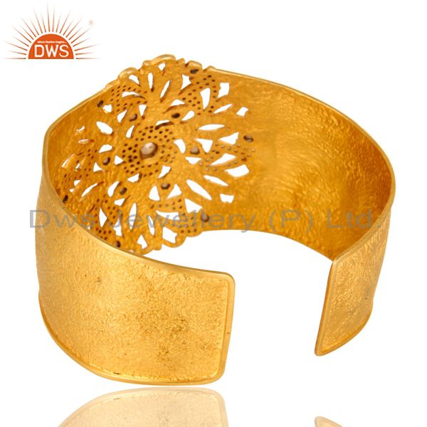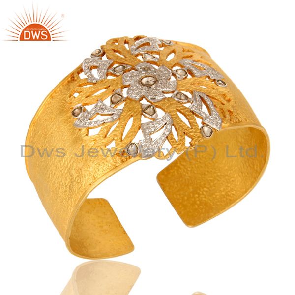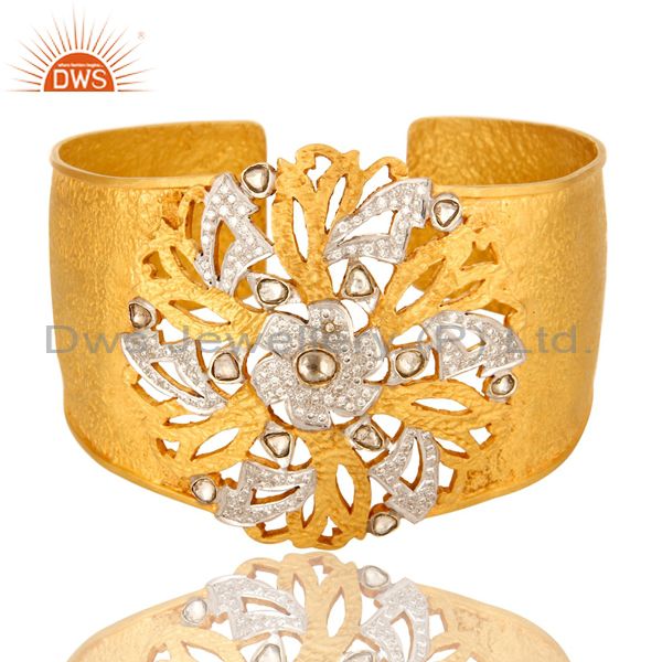 Natural Rose Cut Diamond 18Kt Solid Yellow Gold Wide Cuff Bangle Bracelet Jewelr
