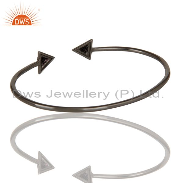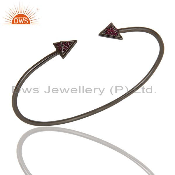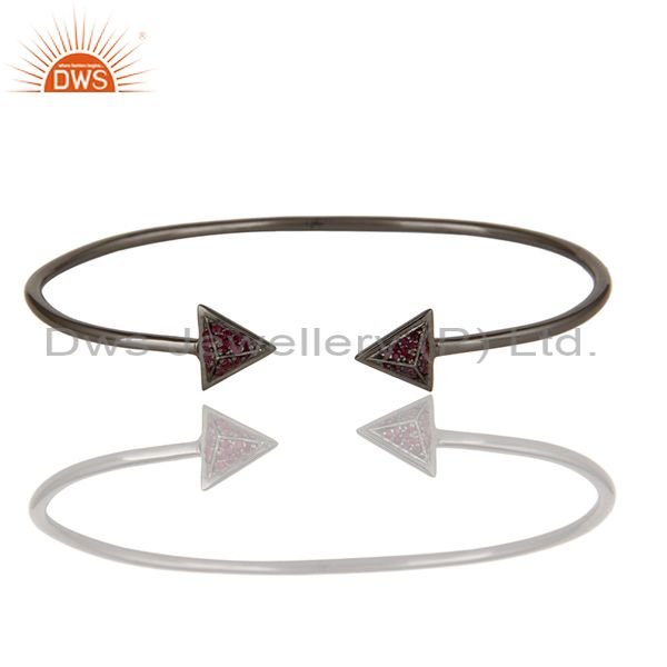Natural Ruby and Sterling Silver Pyramid Design Sleek Cuff Bangle Bracelet