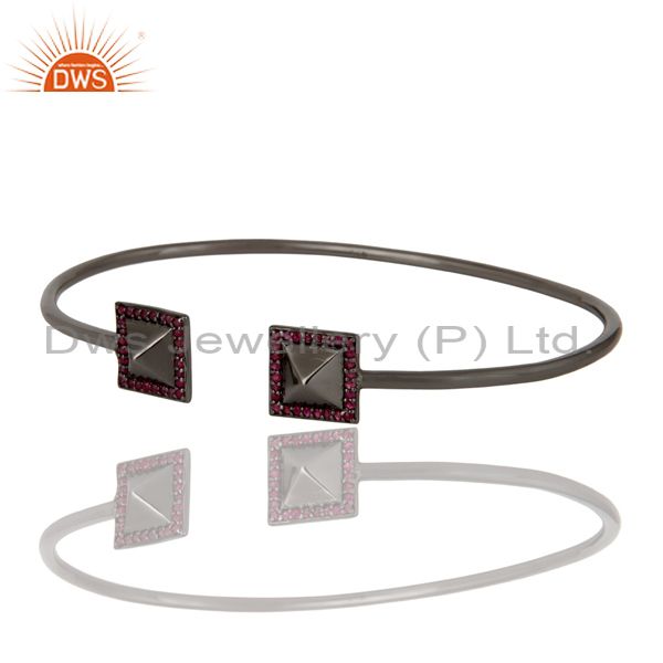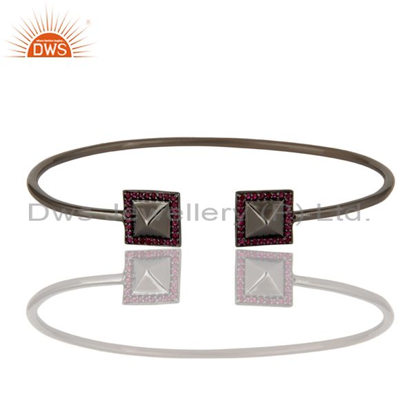 Natural Ruby Sterling Silver Pyramid Cuff Black Rhodium Birth Stone Cuff