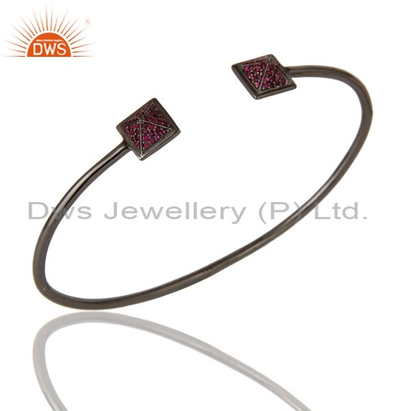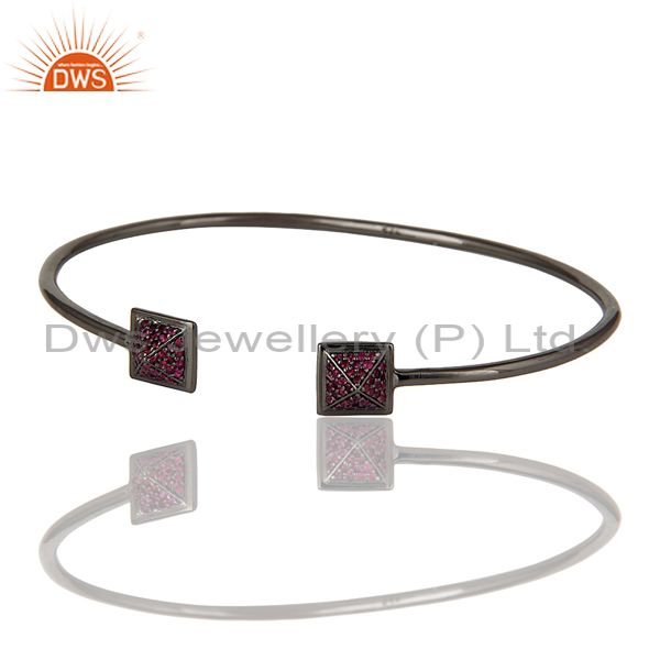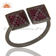 Natural Ruby Sterling Silver Pyramid Cuff Jewelry Bangle
