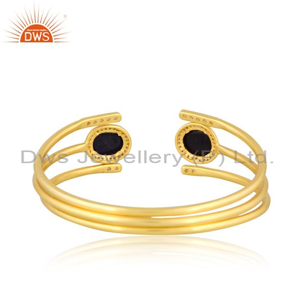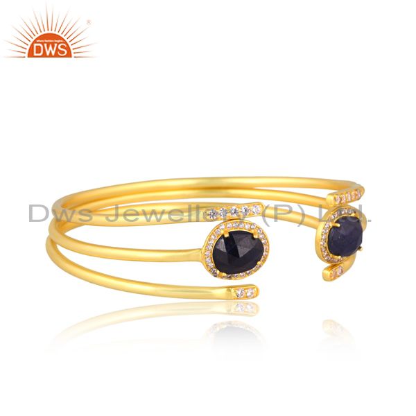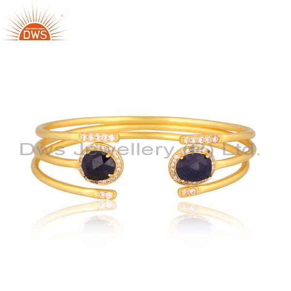 Open Brass Gold Cuff With Sapphire And Cubic Zirconia Stone