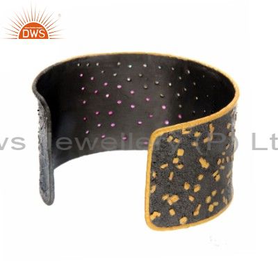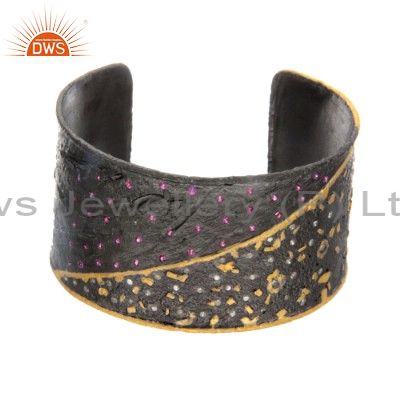 Oxidized 18K Yellow Gold Sterling Silver Ruby Pave Diamond Cuff Bracelet