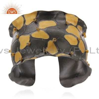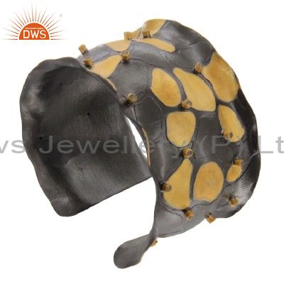 Oxidized And 18K Gold Over Sterling Silver Pave Set Diamond Wide Cuff Bracelet