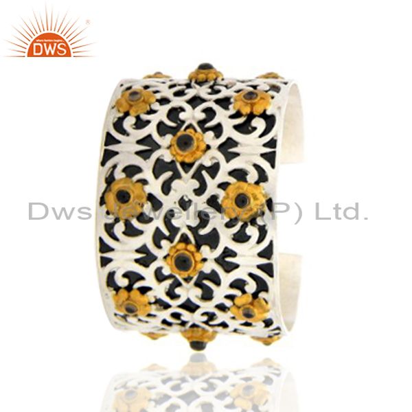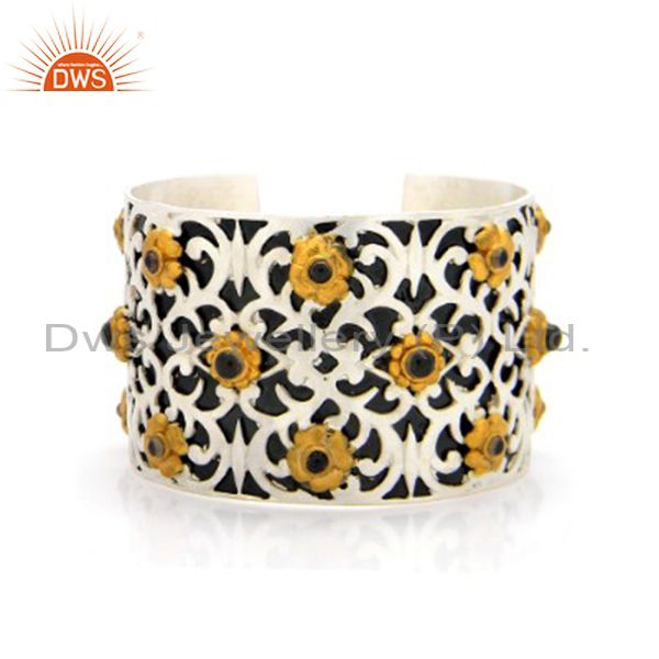 Oxidized And 22K Gold Plated Sterling Silver Smoky Quartz Fashion Cuff Bracelet