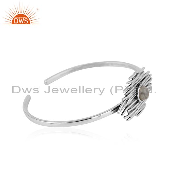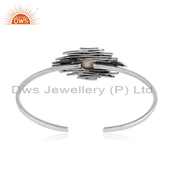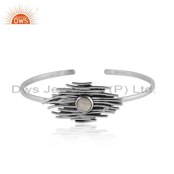 Oxidized Antique 925 SIlver Vintage Design Rainbow Moonstone Cuff Bangle Jewelry