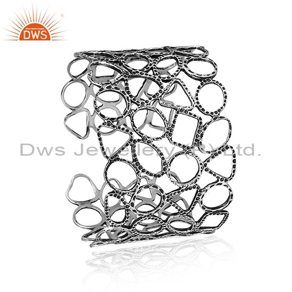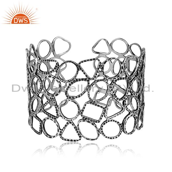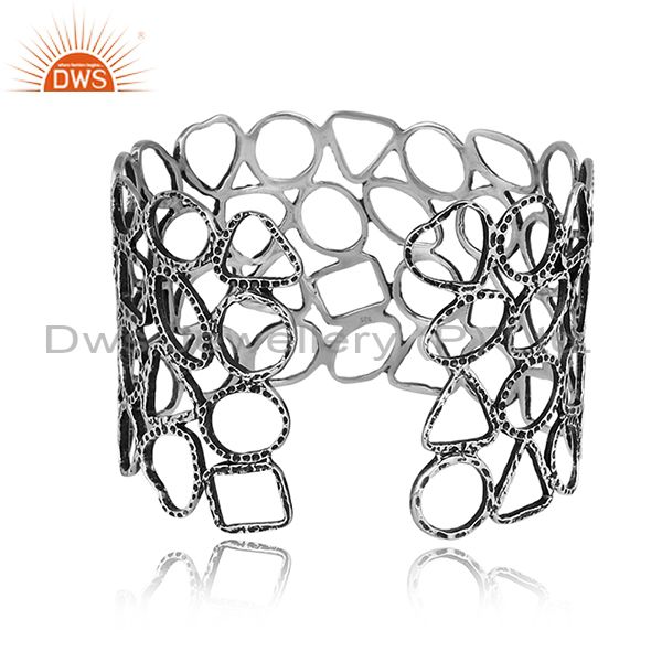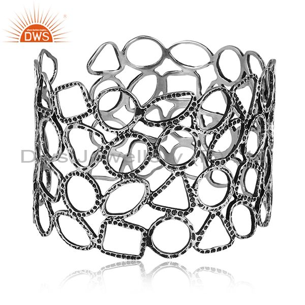 Oxidized Sterling Silver Geometrique Textured Designer Cuff