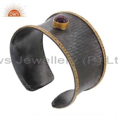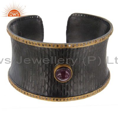Oxidized Sterling Silver Ruby And Pave Diamond Wide Cuff Bracelet / Bangle