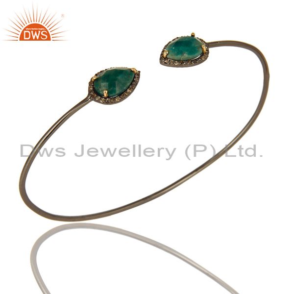 Pave Diamond Emerald 14k Solid Yellow Gold And Silver Cuff Bangle Bracelet