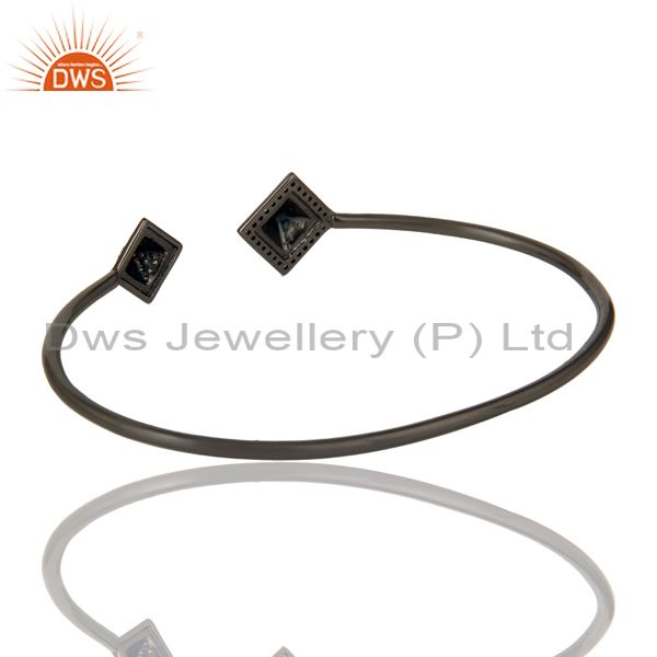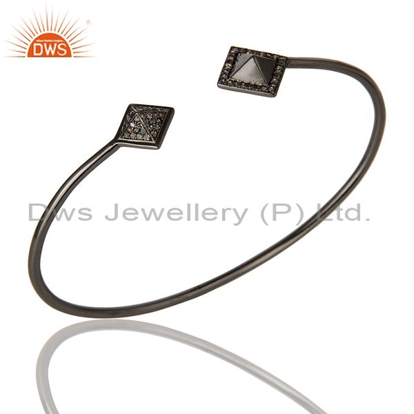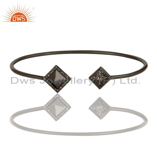 Pave Diamond Sterling Silver Pyramid Cuff Black Rhodium Cuff