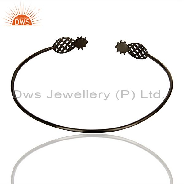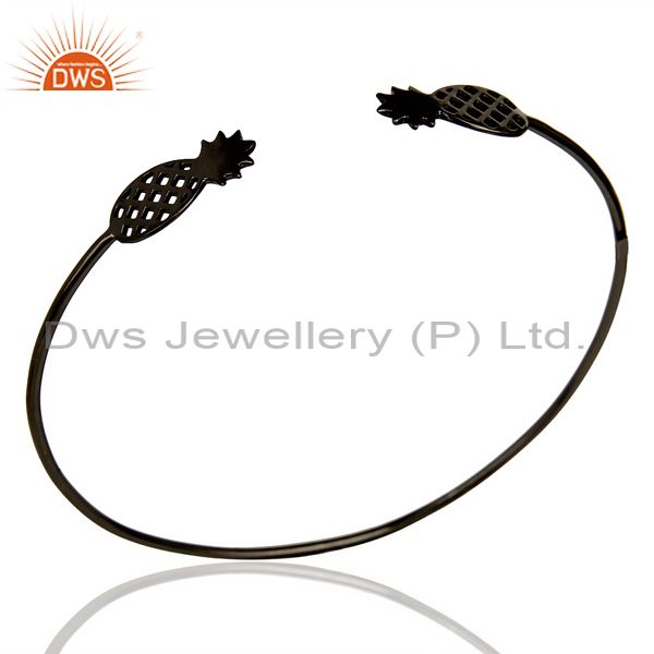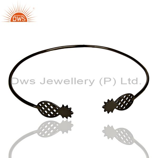 Pineapple Openable Adjustable Cuff Bracelet Black Rhodium In Sterling Silver