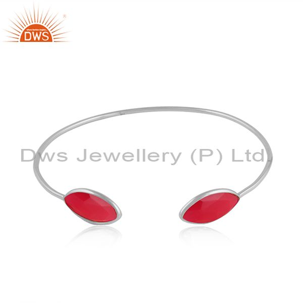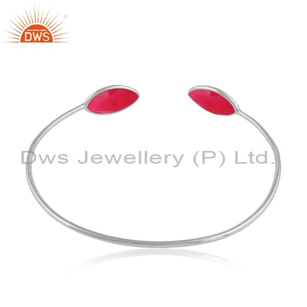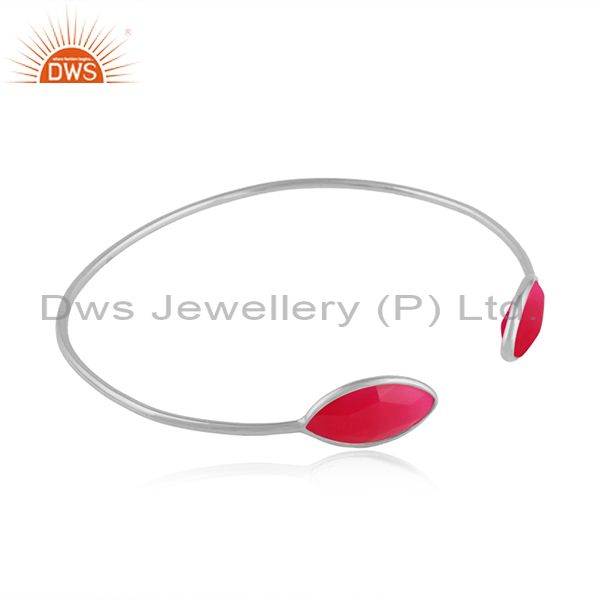 Pink Chalcedony Gemstone Womens Sterling Silver Cuff Bangles