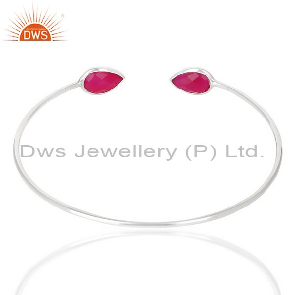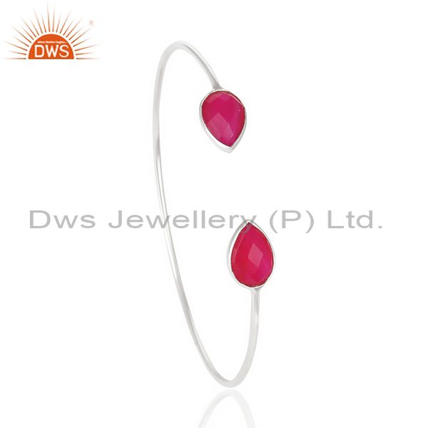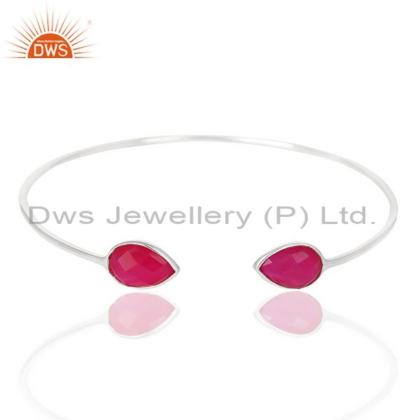 Pink Chlacedony Adjustable Openable White Rhodium 92.5 Sterling Silver Bangle