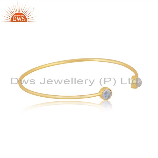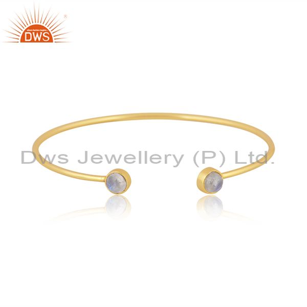 Rainbow Moon Stone Set Gold On Sterling Silver Classic Cuff