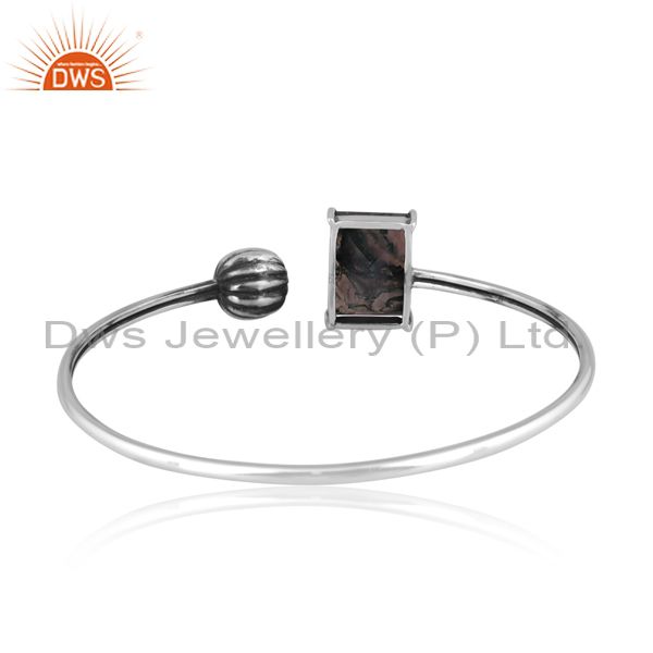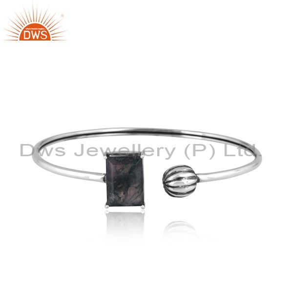 Rectangular Moss Agate Set Oxidized 925 Sterling Silver Cuff