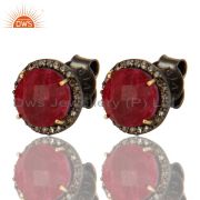 Red Corundum And Pave Diamond 14K Yellow Gold Stackable Open Bangle Bracelet