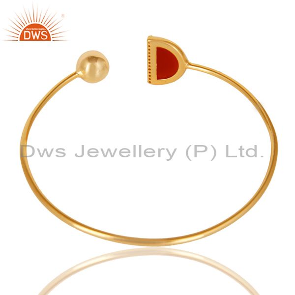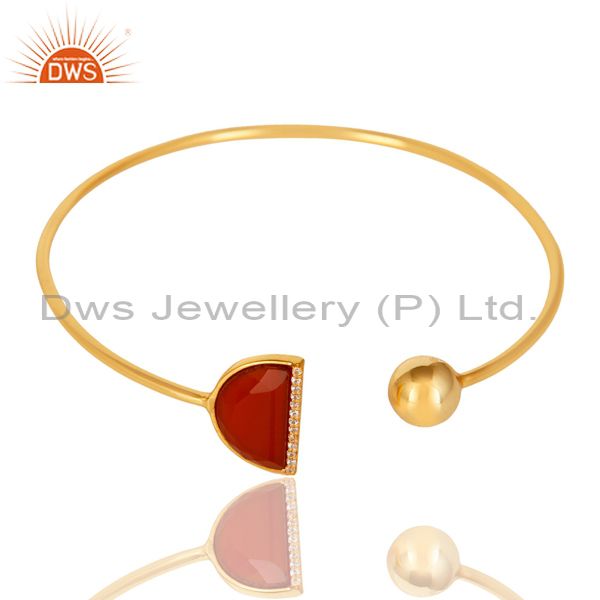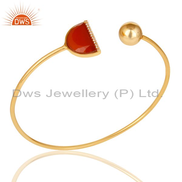 Red Onyx CZ Sleek 14K Gold Plated 925 Sterling Silver Cuff Bangle Jewelry