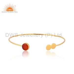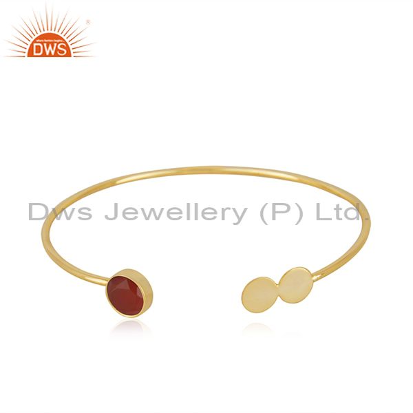 Red Onyx Gemstone 925 Silver Gold Plated Cuff Bracelet Wholesale