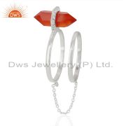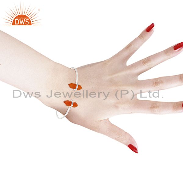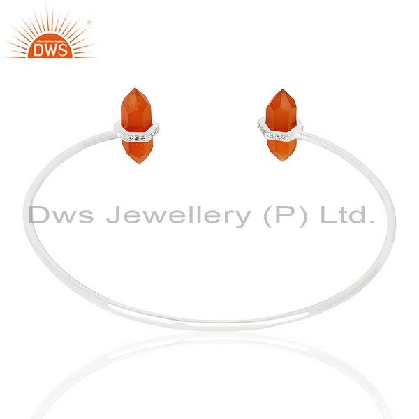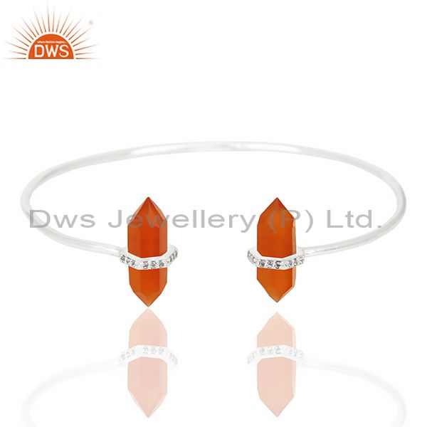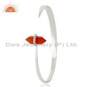 Red Onyx Pencil Point Healing Openable Adjustable Sterling Silver Bangle