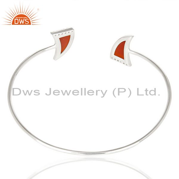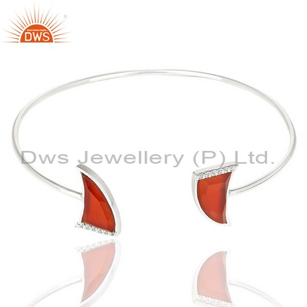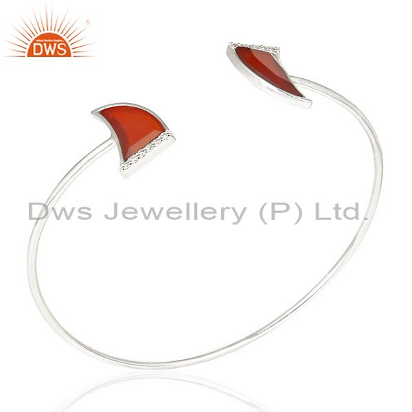Red Onyx Two Horn Studded Bangle In Solid 92.5 Sterling Silver