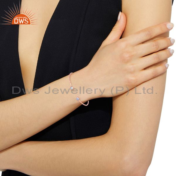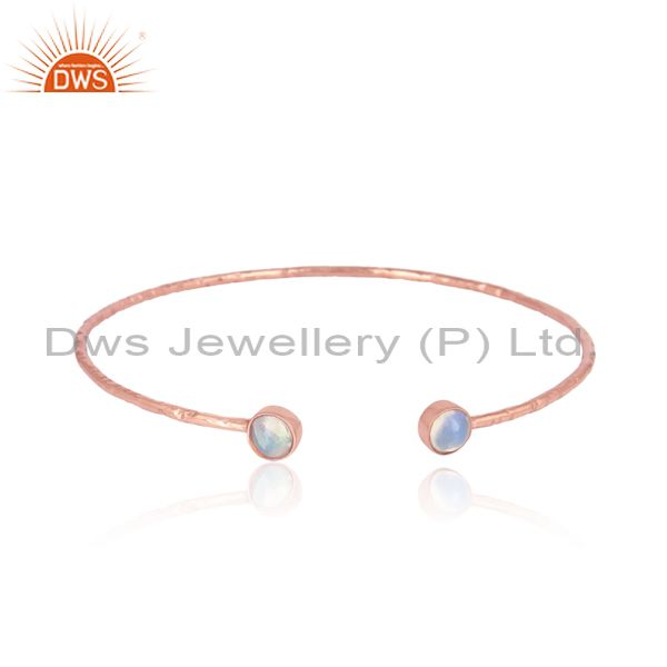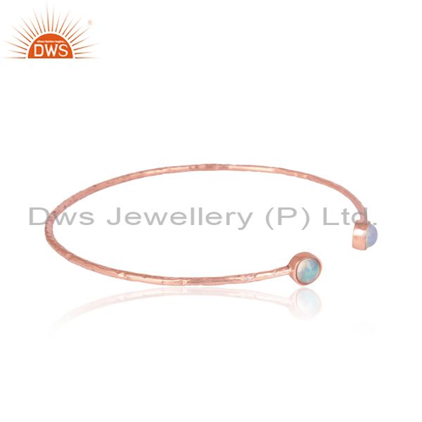 Rose Gold On Silver 925 Ethiopian Opal Gemstone Designer Bangle