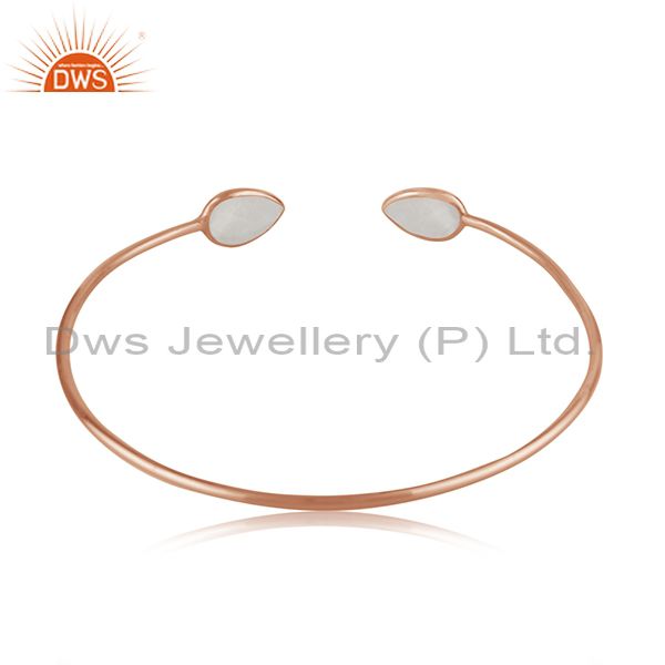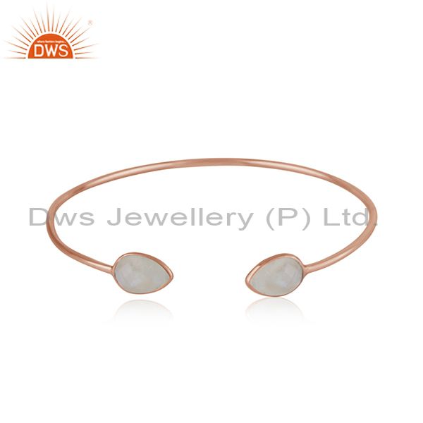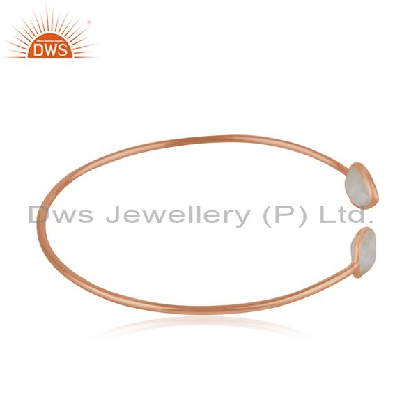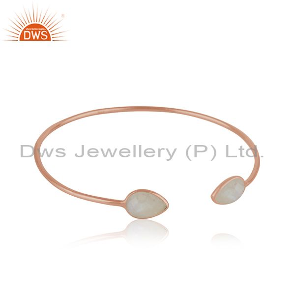 Rose Gold Plated 925 Silver Rainbow Moonstone Simple Cuff Bracelet Wholesaler