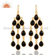 Shiny Yellow Gold Plated Sterling Silver Adjustable Bangle With Black Onyx
