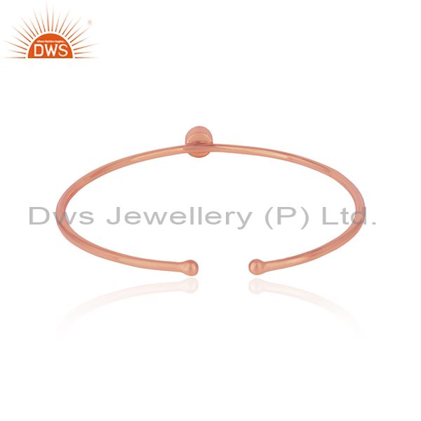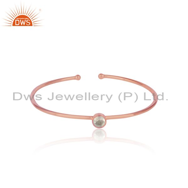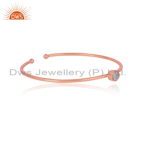 Silver 925 Rose Gold Plated Sleek Cuff With Rainbow Moonstone