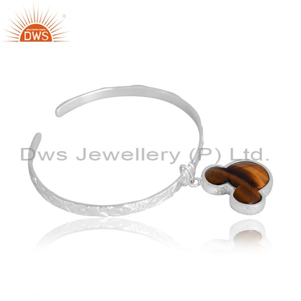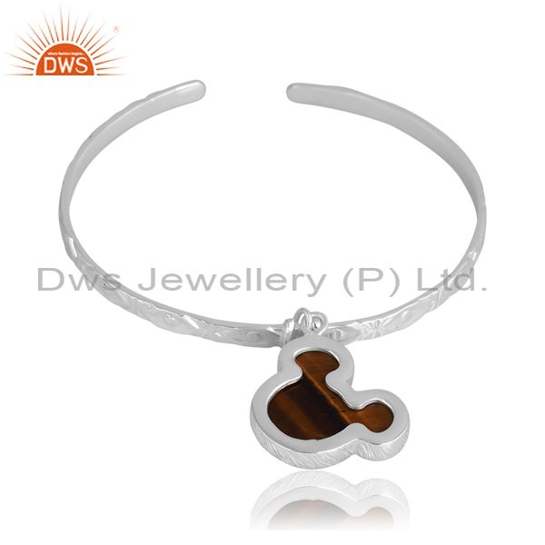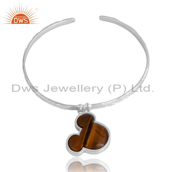 Silver Plain Cuff Band With Mickey Drop Charm In Tiger Eye