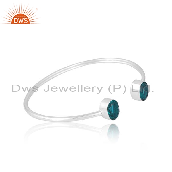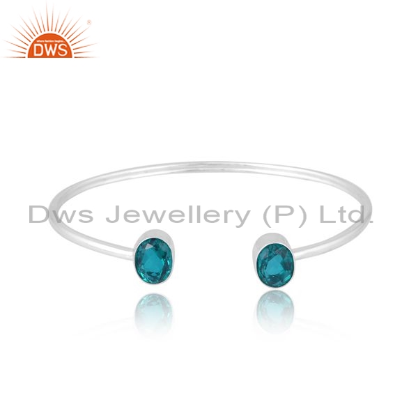Silver White Cuff With Doublet Santa Maria Aquamarine