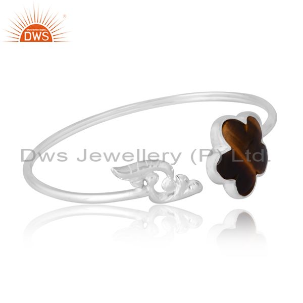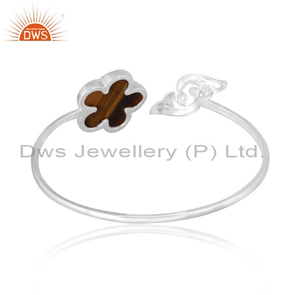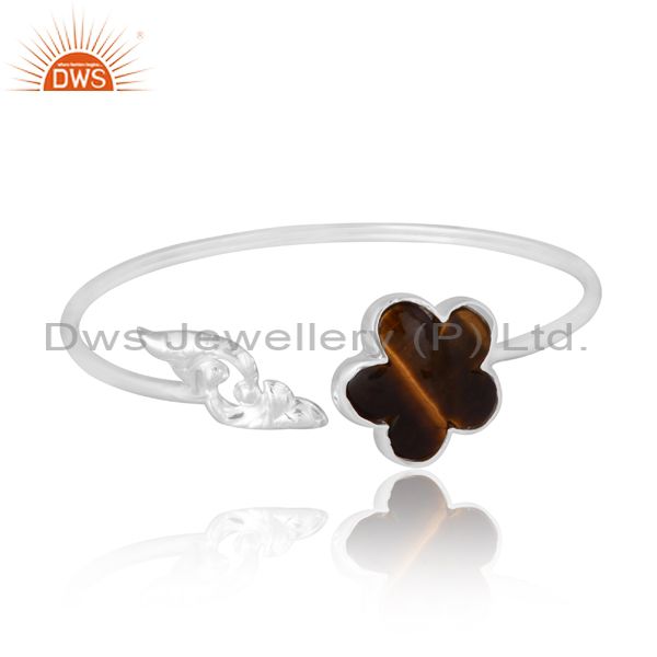 Simple Flower And Leaf Cuff With Tiger Eye Yellow For Women