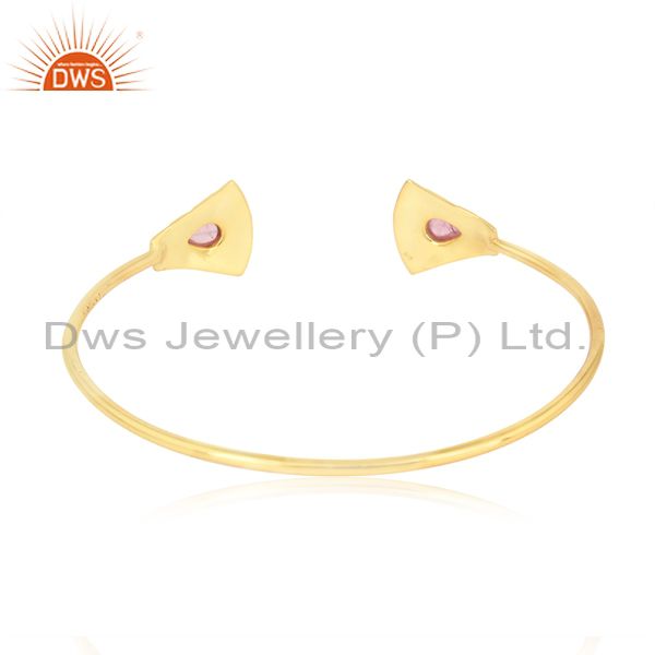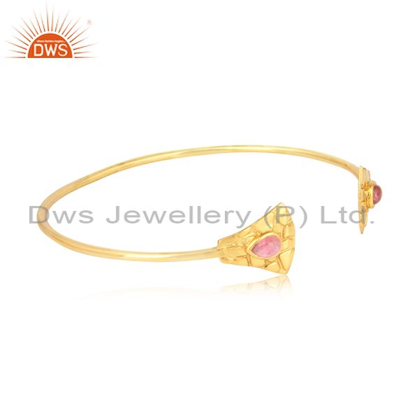 Sleek Jauguar Textured Pink Tourmaline Cuff in Gold on Silver 925