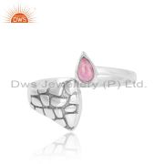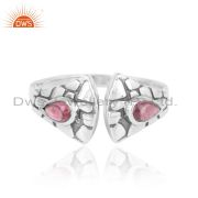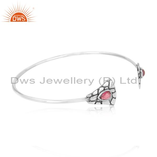 Sleek Jauguar Textured Pink Tourmaline Cuff in Oxidized Silver