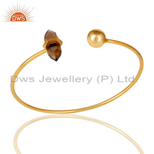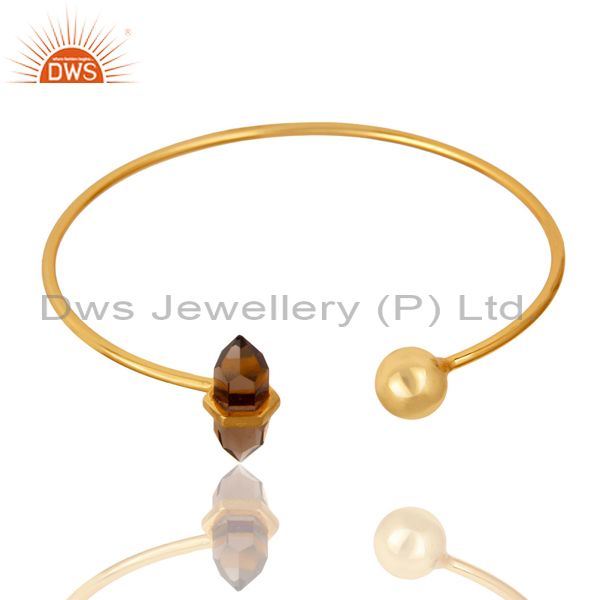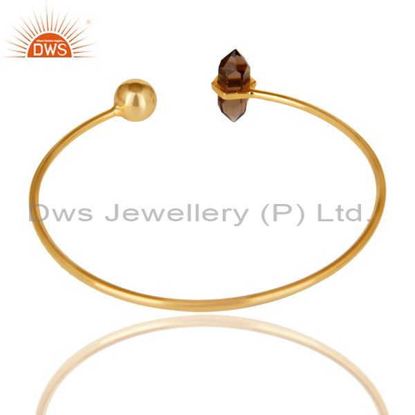 Smoky Double Terminated Pencil Point Openable Gold Plated Silver Bangle