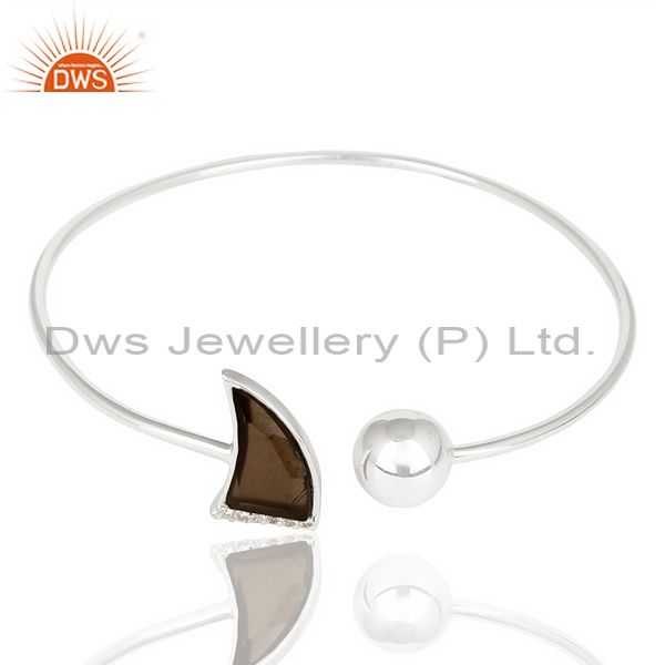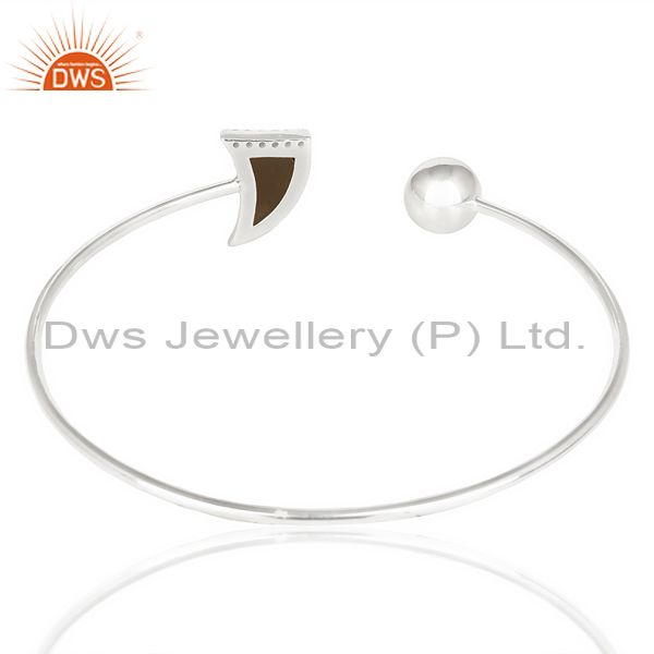 Smoky Horn Openable Adjustable White Cz Studded 92.5 Sterling Silver Bangle