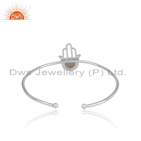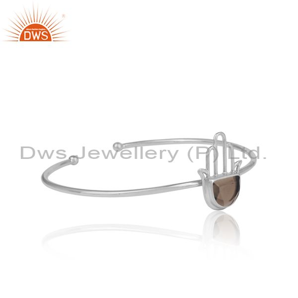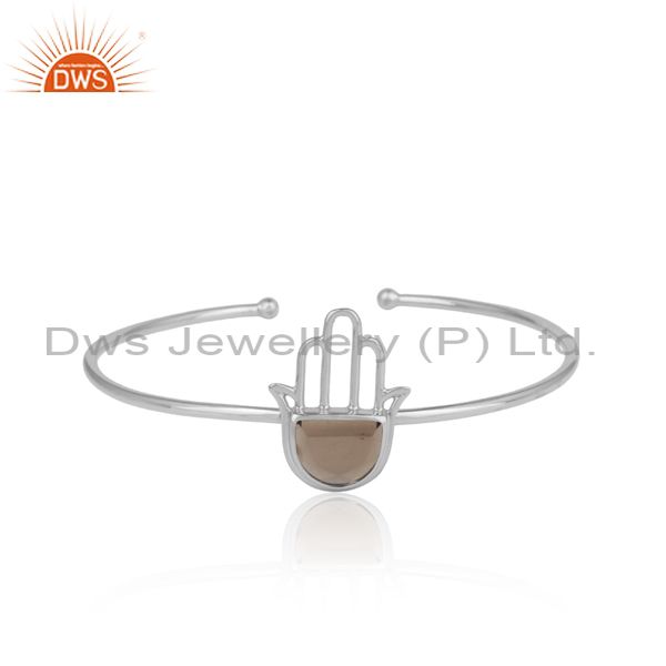 Smoky Set Fine 925 Sterling Silver Hamsa Statement Cuff