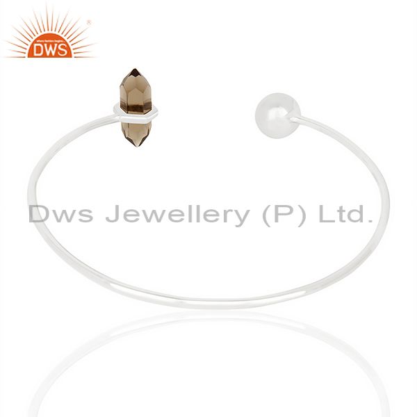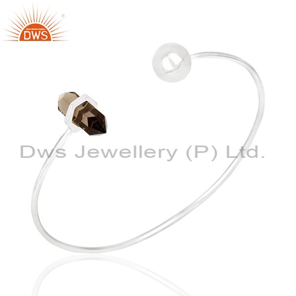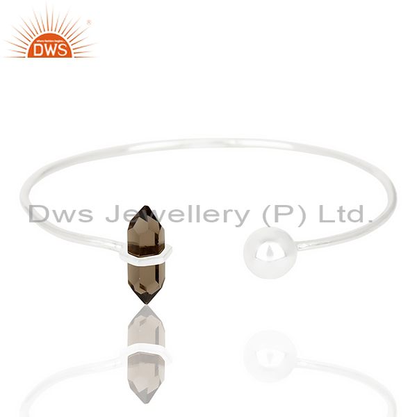 Smoky Topaz Double Terminated Pencil Point Openable Sterling Silver Bangle