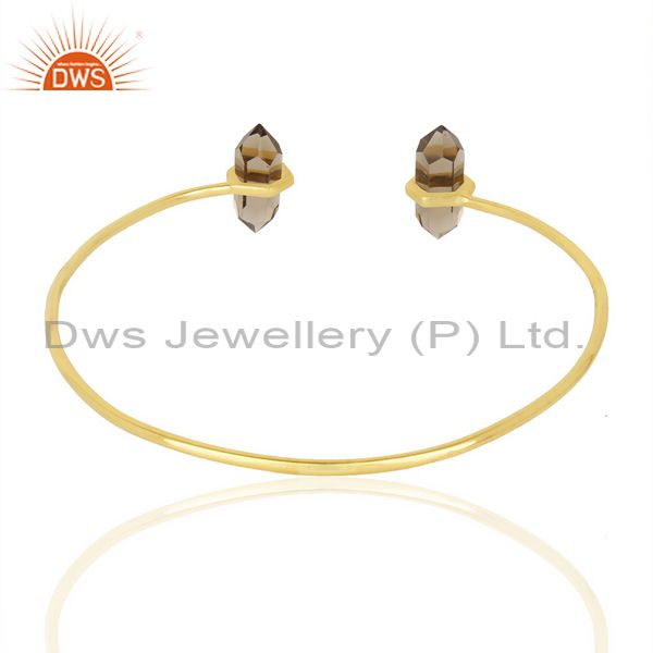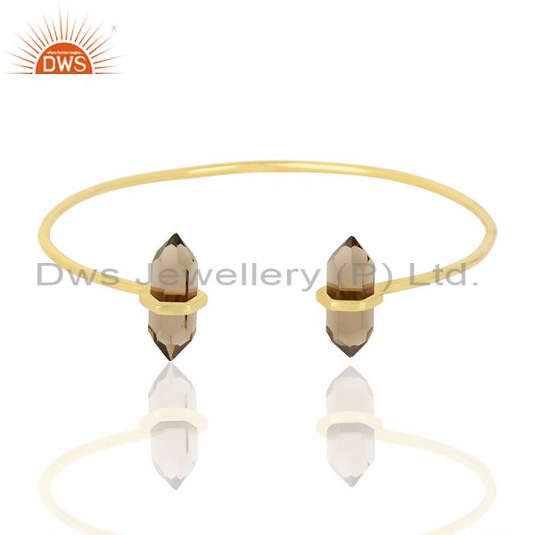 Smoky Topaz Terminated Pencil Point Openable Gold Plated Silver Bangle