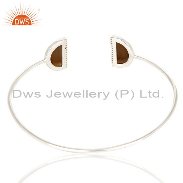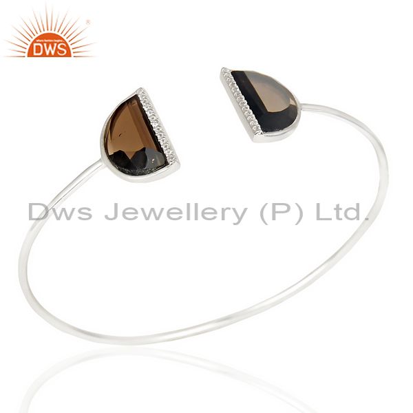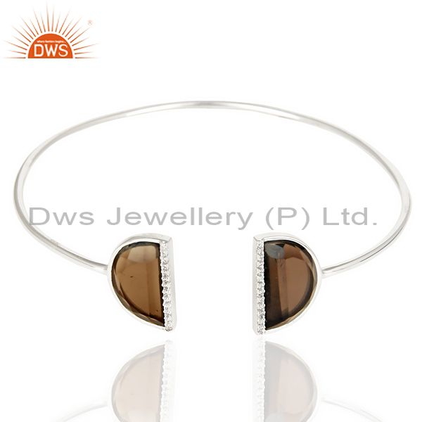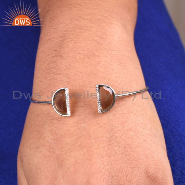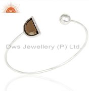 Smoky Topaz Two Half Moon Bangle Studded With Cz In 92.5 Sterling Silver