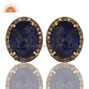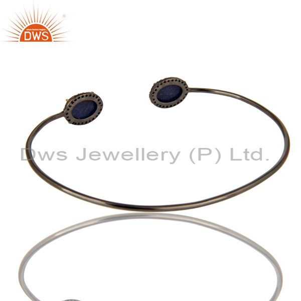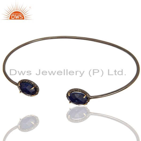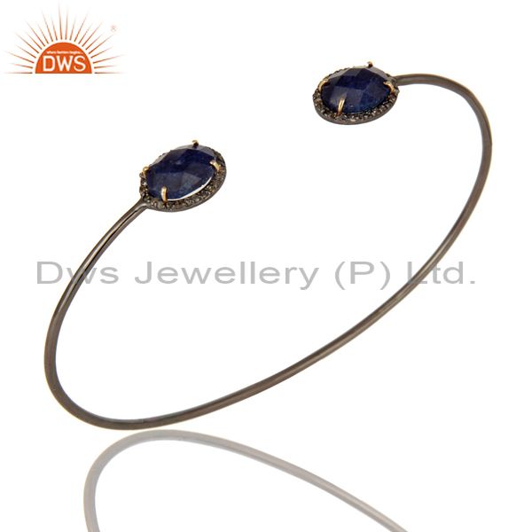 Solid 14K Gold And Silver Blue Sapphire Pave Set Diamond Open Bangle Bracelet