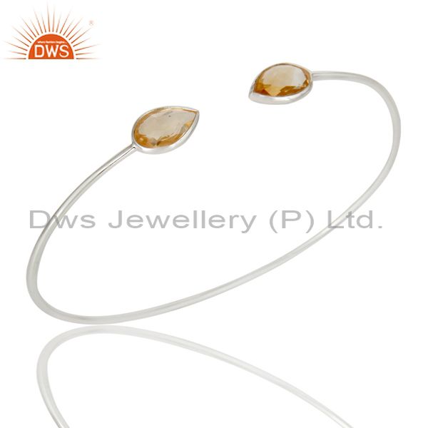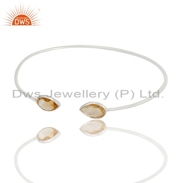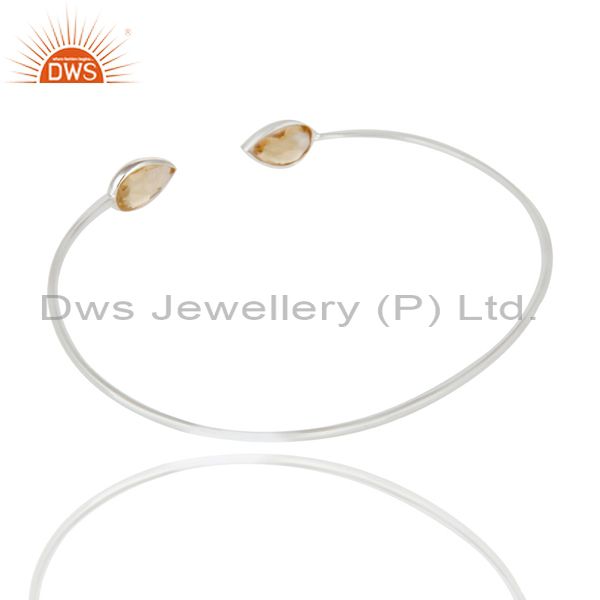 Solid 925 Sterling Silver & Faceted Citrine Open Stackable Bangle
