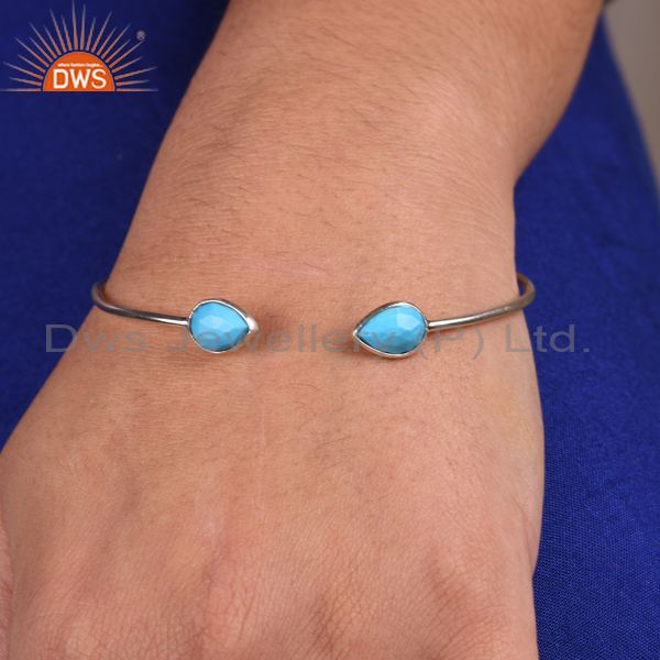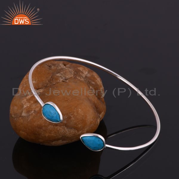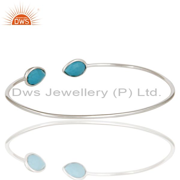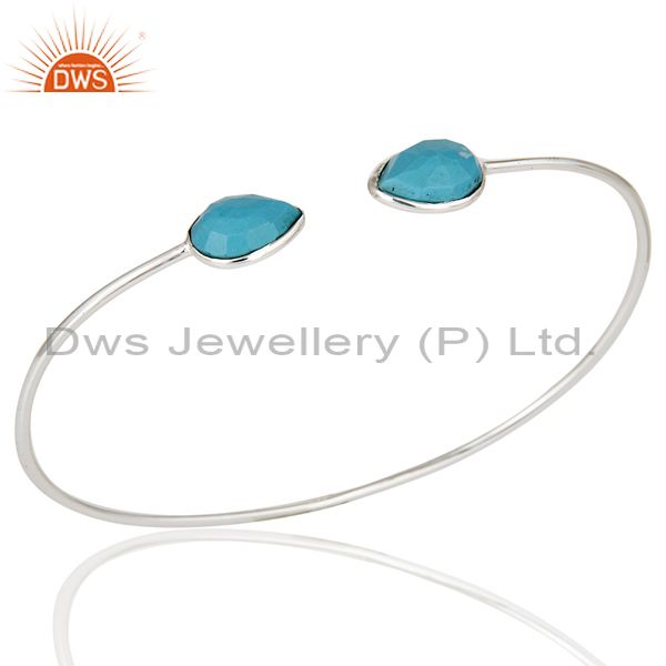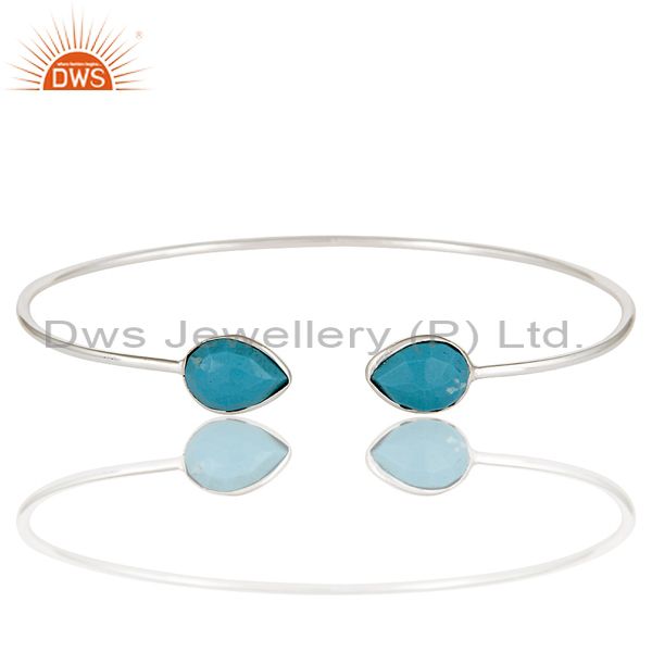 Solid 925 Sterling Silver Turquoise Gemstone Stackable Open Bangle Jewellery