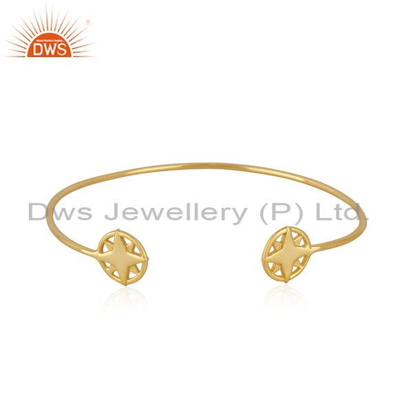 Star Charm Yellow Gold Plated 925 Sterling Silver Cuff Bracelet Wholesale
