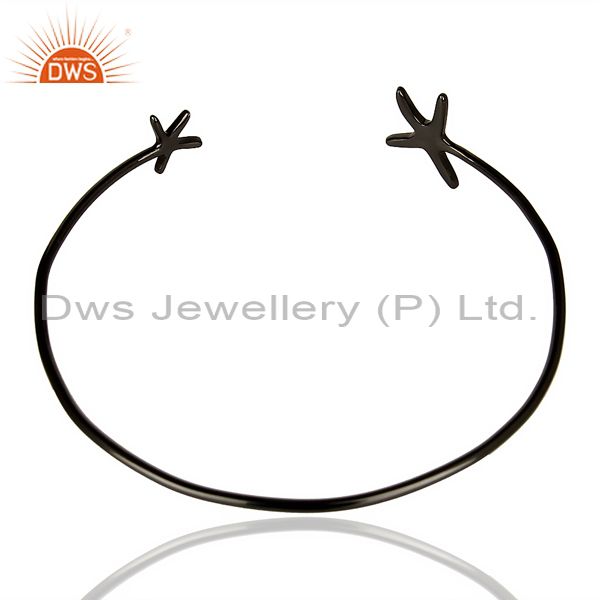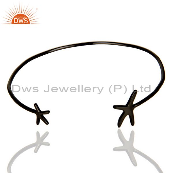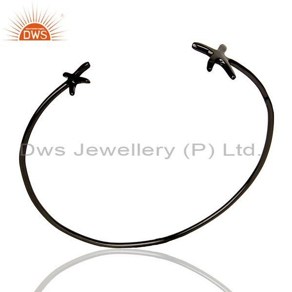 Star Fish Bangle,Openable Adjustable Bangle Black Rhodium Plated In Solid Silver